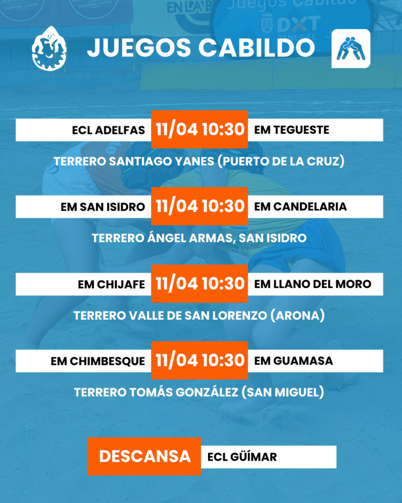 Ya puedes consultar los horarios de las luchadas de los Juegos Cabildo de este sábado, 11 de abril